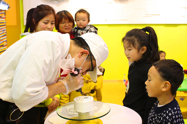 机会难得,快点跟着我们的蛋糕老师学几招,回家就可以做给爸爸妈妈吃了哦!