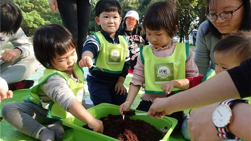 种植植树少不了的当然是泥土和植物!宝宝们用小手与泥土来了一次亲密接触,感受泥土的湿软,促进对自然的认知。