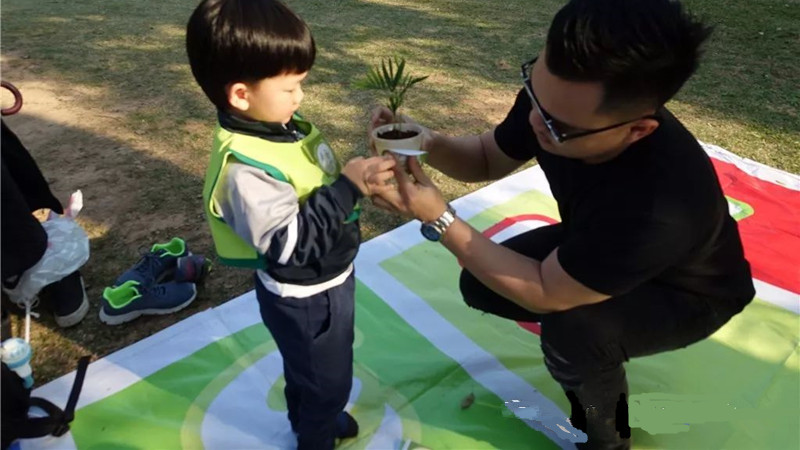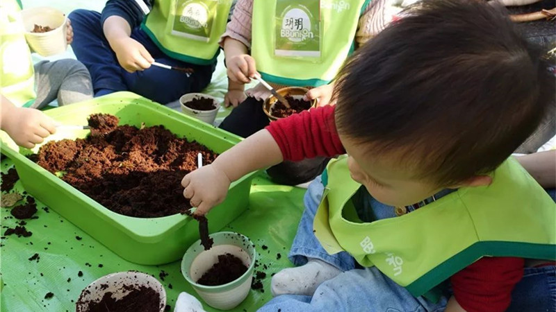 帮助宝宝种下绿苗,装入泥土,扶正小苗,每一下都充满着浓浓的亲情暖意。