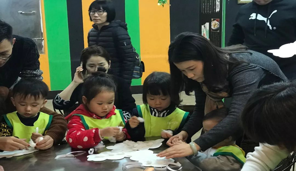 圆咕噜的小眼睛,紧紧地跟着老师的手移动,面粉在老师的手里,像是在跳舞,又像是在和手指玩游戏,宝贝们都迫不及待地想动手尝试了